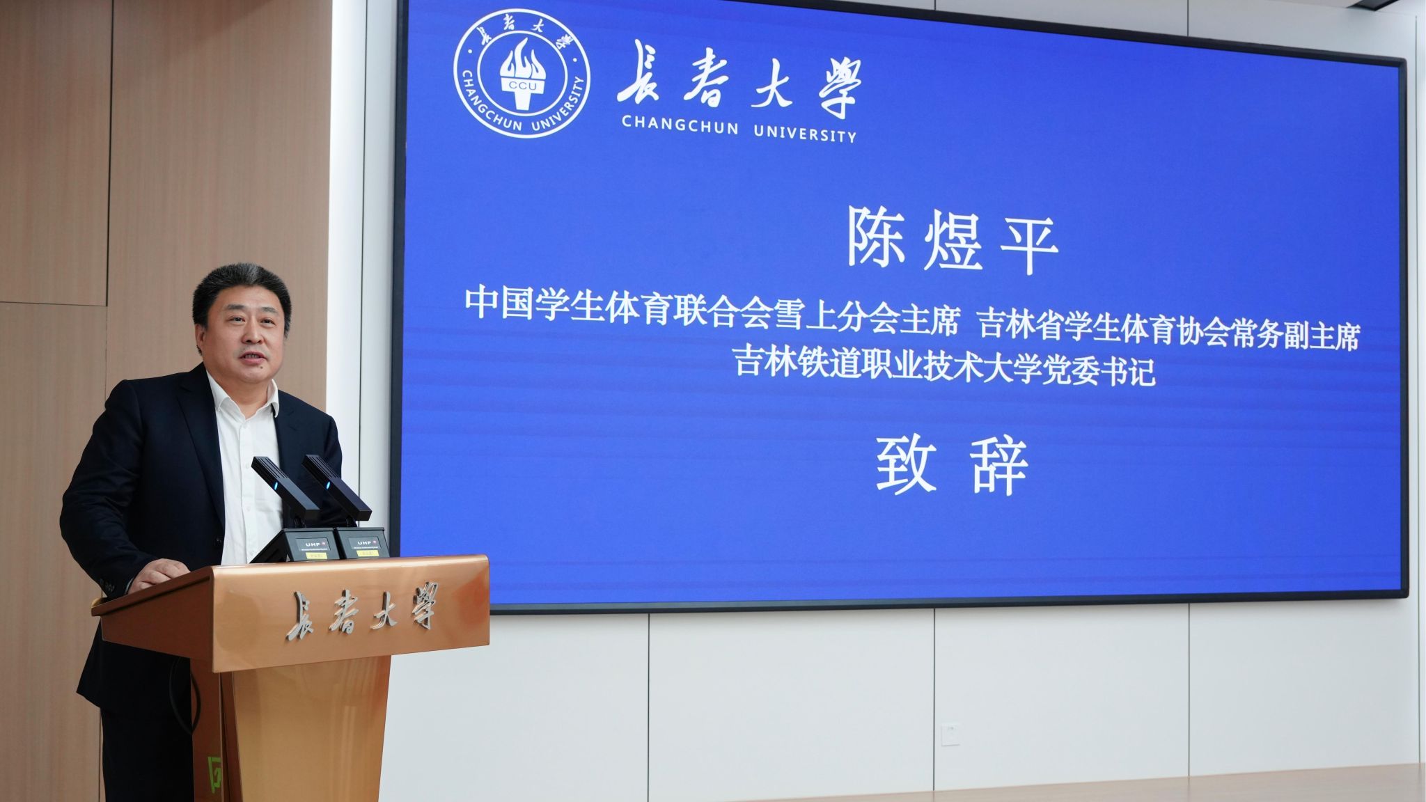 11月29日,学校举行体育学院揭牌仪式暨运动能力开发专业建设研讨会。吉林省教育厅副厅长许治,吉林省体育局副局长刘琦,中国学生体育联合会雪上分会主席、吉林省学生体育协会常务副主席、吉林铁道职业技术大学党委书记陈煜平,省内外35位体育界精英,兄弟院校代表,校长韩业、副校长张洪杰出席活动。仪式由张洪杰主持。